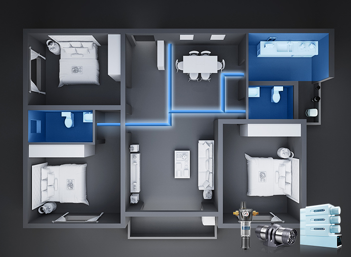 ? 3~4T/H凈水流量,高峰用水不等待,適用于160㎡以下戶型